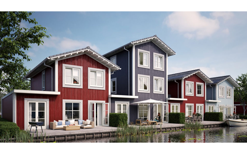 Stijlgroep developed a waterbased landscape and urban lay-out for a variety of neighbourhoods that respond to their water environment differently. The overall architecture has a colourful Scandinavian edge to it and refers to the architecture on the Scandinavian islands. Most of the houses or plots are in direct contact with water, connecting Dorpshaven (Village harbour) directly to the Westeinderplassen, one of Hollands largest inner lakes for water recreation.