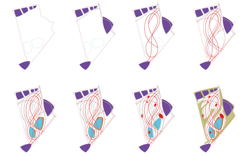 Het plangebied krijgt een sterke omzoming door bomen en palmen, om de interne wereld kracht bij te zetten. Twee identiteiten krijgen vervolgens vorm: water en rijke beplanting, verweven door een sterk netwerk van paden, ontmoetingsplekken, programmering en zichtlijnen. Diverse routes ontstaan in dit netwerk, zoals een beeldenroute, een interactieve route, een route van voedsel en recreatie, een botanische route en een route van uitzicht. Cultuur, dineren, botanische tuinen, uitkijkpunten, muziek en marktactiviteiten vinden hiermee hun plaats in deze hedendaagse landschappelijke oase.